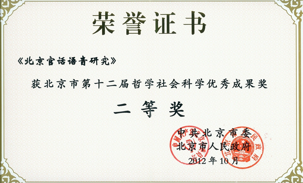 · 张世方研究员的《北京官话语音研究》获北京市第十二届哲学社会科学优秀成果奖二等奖