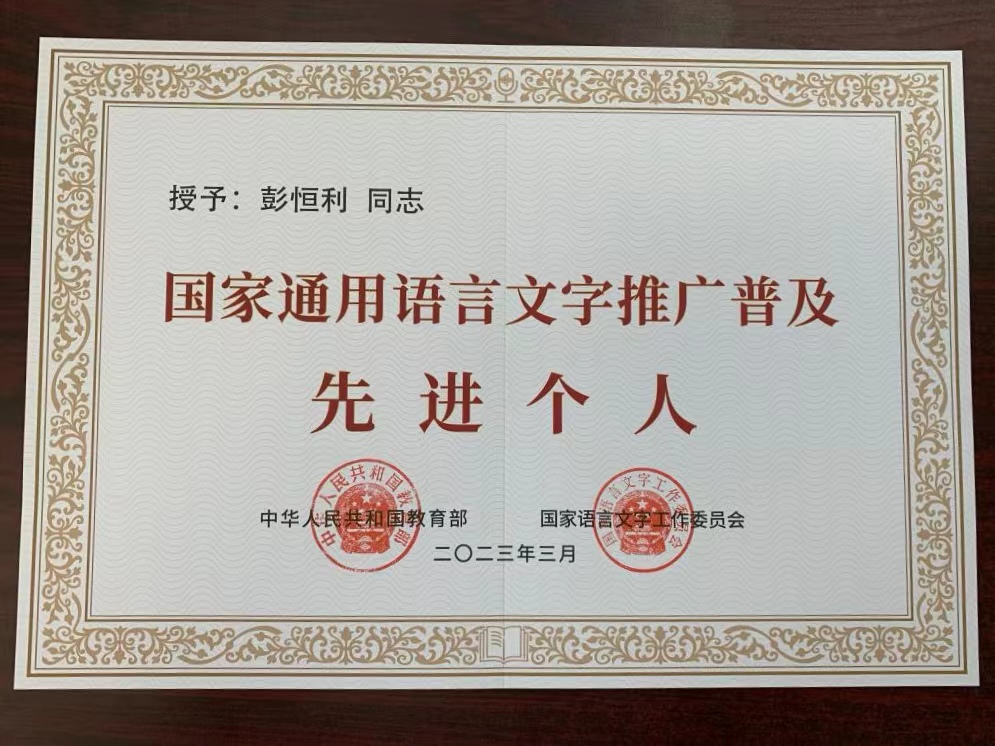 · 彭恒利研究员荣获“国家通用语言文字推广普及先进个人”称号